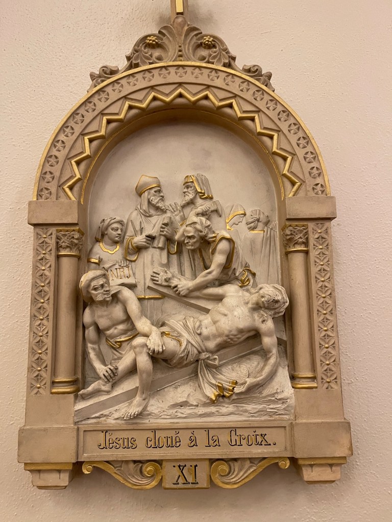 Ah yes! I went to confession this morning at a church I do not usually attend. On my way out I stopped to look at the Stations of the Cross and noticed they were in the lingua Franca. Seems the church was originally staffed by Vincentian Fathers.