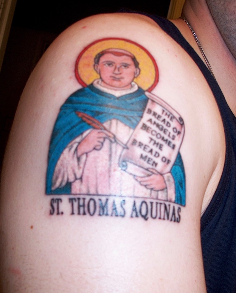 PS: Here’s a bonus pic tonight. A dear friend of mine converted to the faith in his mid-20’s and decided to celebrate the event by getting his patron saint inked onto his bicep. I’m not a fan of tattoos but if you’re going to do it, at least this isn’t terrible.