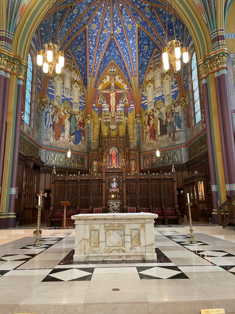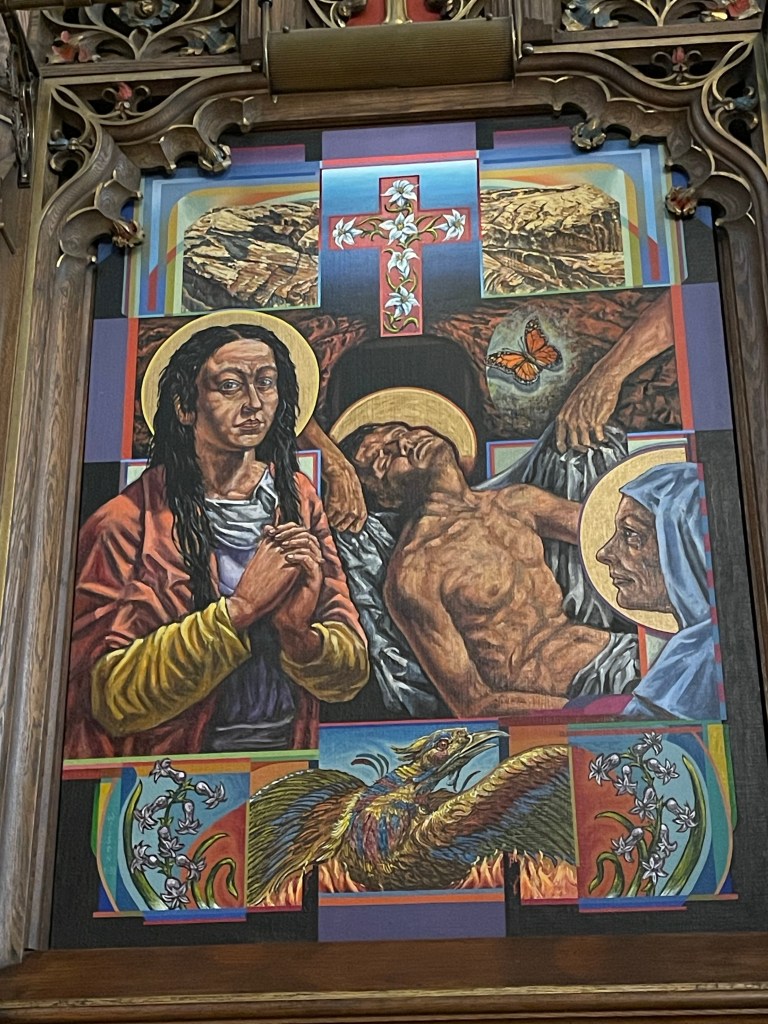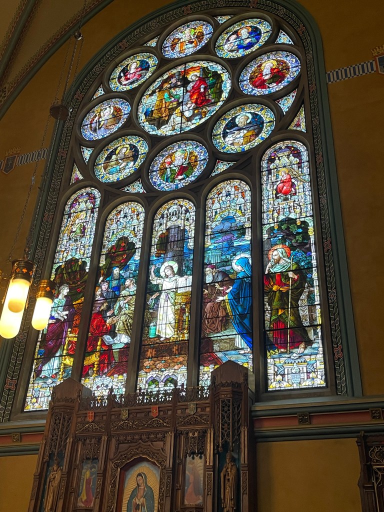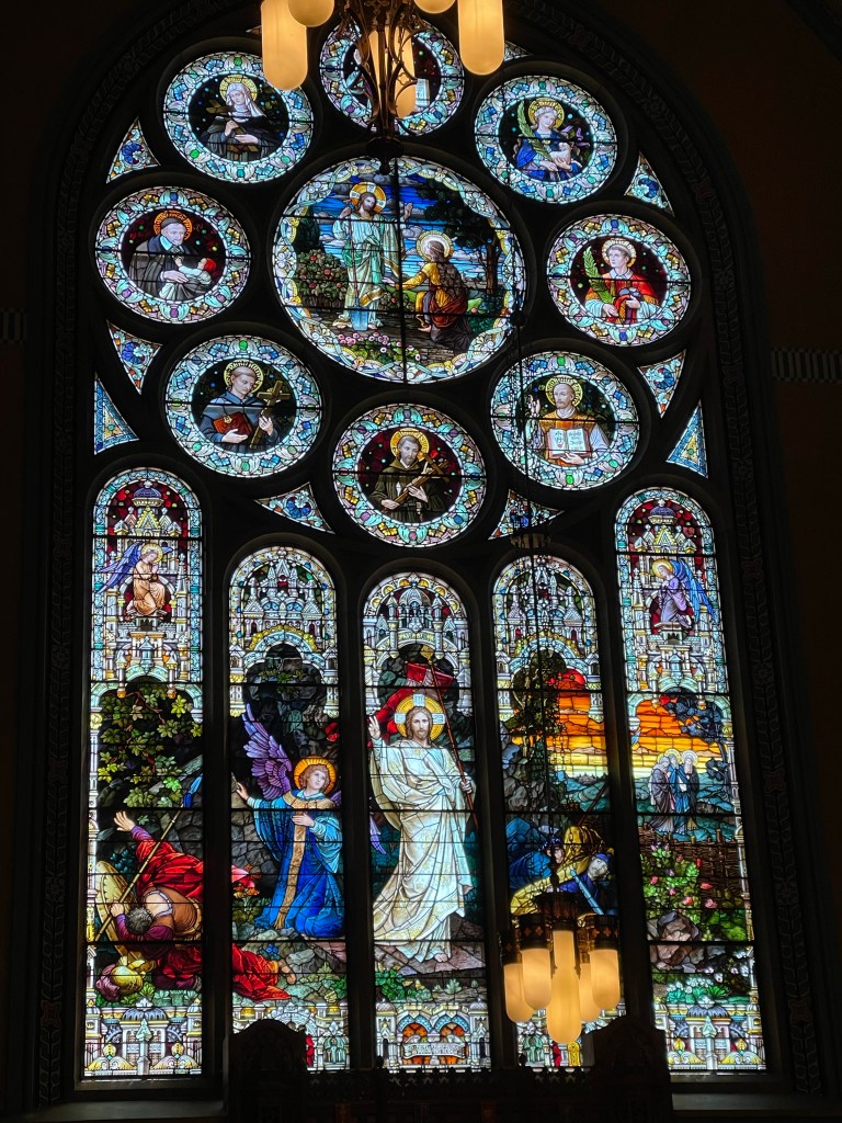 The Cathedral of the Madeleine claims to be the only cathedral in the US named after Mary Magdalene. The cathedral was dedicated in 1909 and possesses all the beauty it should for that time period. The stained glass windows in particular are quite impressive, depicting the glorious and joyful mysteries of the rosary. Of course, in the 1990’s the bishop of this place “brought the cathedral in line with Vatican II”. That’s a quote from the pamphlet they have in the back of the church. It simply means he attempted to wreck the place. Somehow he did not totally succeed. What he did (at least to my perception) was to wall off the original sanctuary with a chancel screen to create a “Eucharistic chapel” while building a new altar out in the center of the transept. He also commissioned a local artist to make new stations. The only thing is that there are way more than 14 of these in the church. Again, according to the pamphlet, they wanted to follow the stations that were “approved by the Vatican” in 1975. These are not rightly stations but rather the whole of the Passion and thus include the 14 stations. The artist apparently thought that making Our Lord look like an extra in the Planet of the Apes was a great tribute.