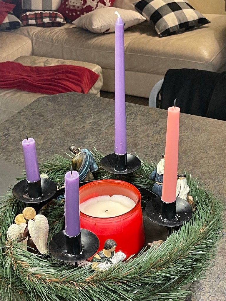 We’ve reached the end, folks. And since this is the shortest Advent we could possibly have, we have the delightful situation of one purple candle that has barely been touched. I even asked one of our priests tonight if Sunday’s Mass is the Mass of the fourth Sunday or the Vigil of Christmas. Turns out, it’s the Vigil (even though it is undeniably the fourth Sunday of Advent).