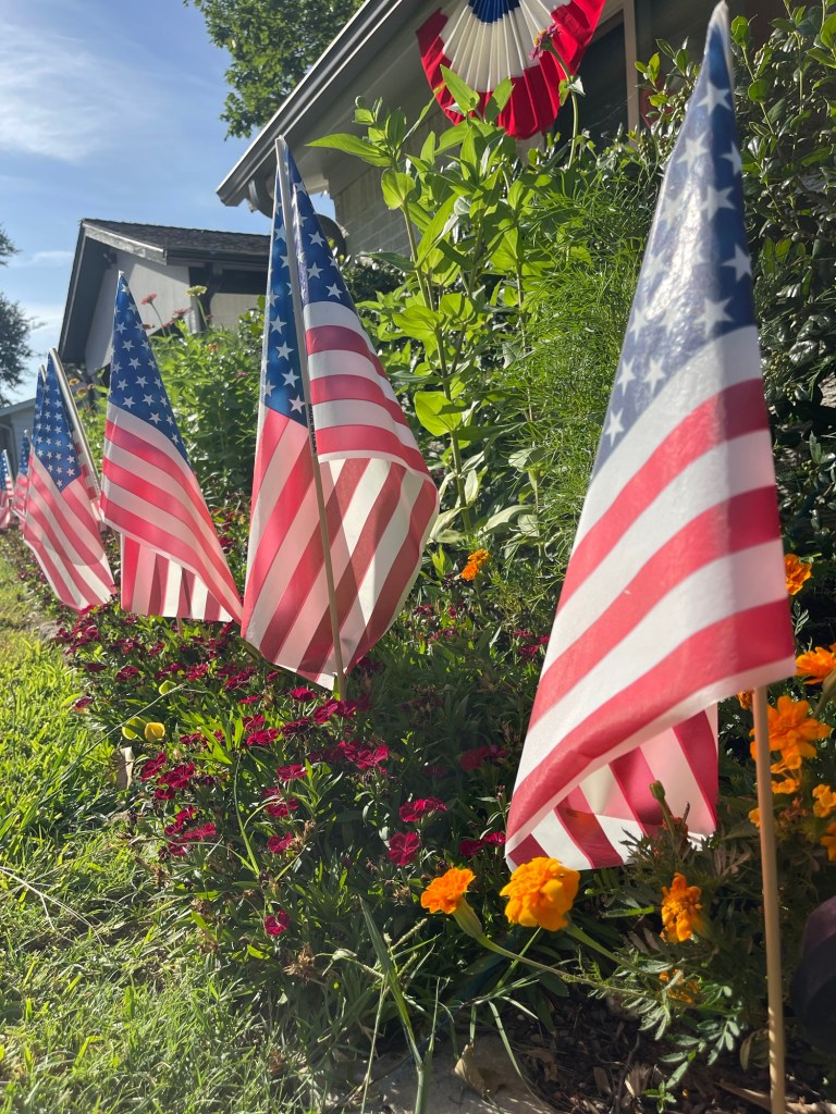 And yet it’s hard for me to abandon my patriotism. I spent a little time on Sunday hanging red, white, and blue bunting from the front porch and sticking little American flags throughout the garden bed. I still well up a bit when I hear the Star Spangled Banner. And I still love to watch my small town’s Independence Day parade with its floats carrying the winners of the library’s dog/human lookalike contest and the local chapter of the Future Farmers of America. That’s one float, by the way. I will still watch the director’s cut of 1776 because… “Sit Down, John!”