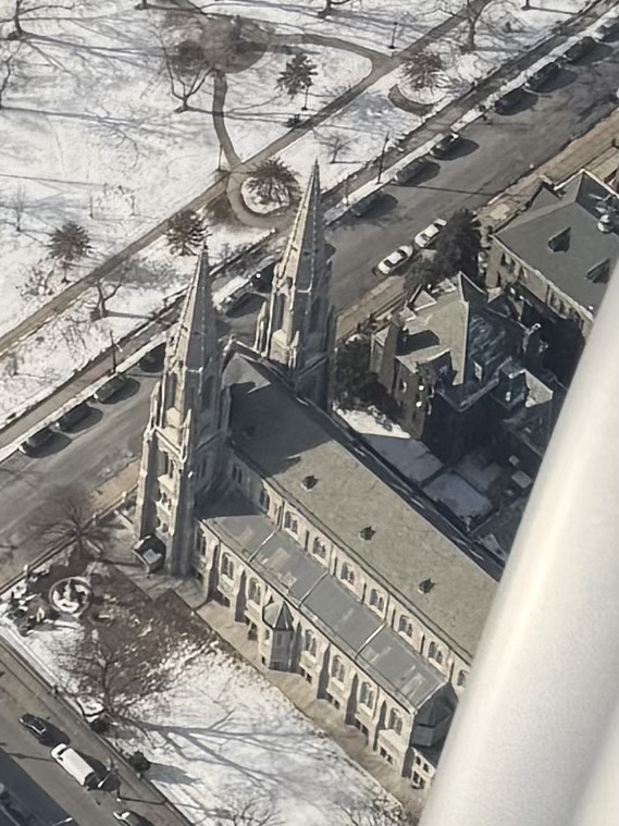 This, friends, is the Catholic Church of St. Patrick in Elizabeth, NJ and Our Lord Jesus Christ reposes inside a tabernacle in this edifice as He does in tabernacles all over the planet. He remains there for love of us poor wretches. And overflying His Majestic Presence gave me pause to make the sign of His Holy Cross, bow my head, and utter, “My Lord and my God!” Folks, I already had the beads out and was offering my rosary for safe travels. I have to say, all of this must have been strange to the elderly Muslim couple sitting next to me. Oh, they were eyeing my every move. Interestingly, they both offered me thanks as we touched down. I’m not sure if they were being sarcastic or genuinely thankful for the prayers.