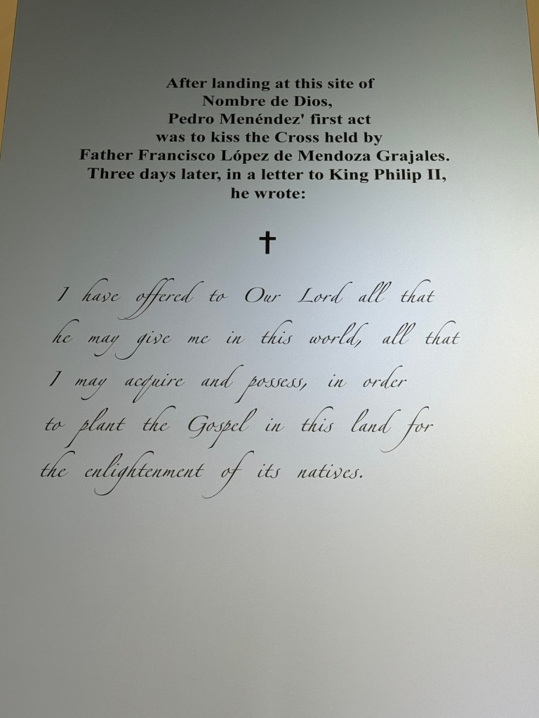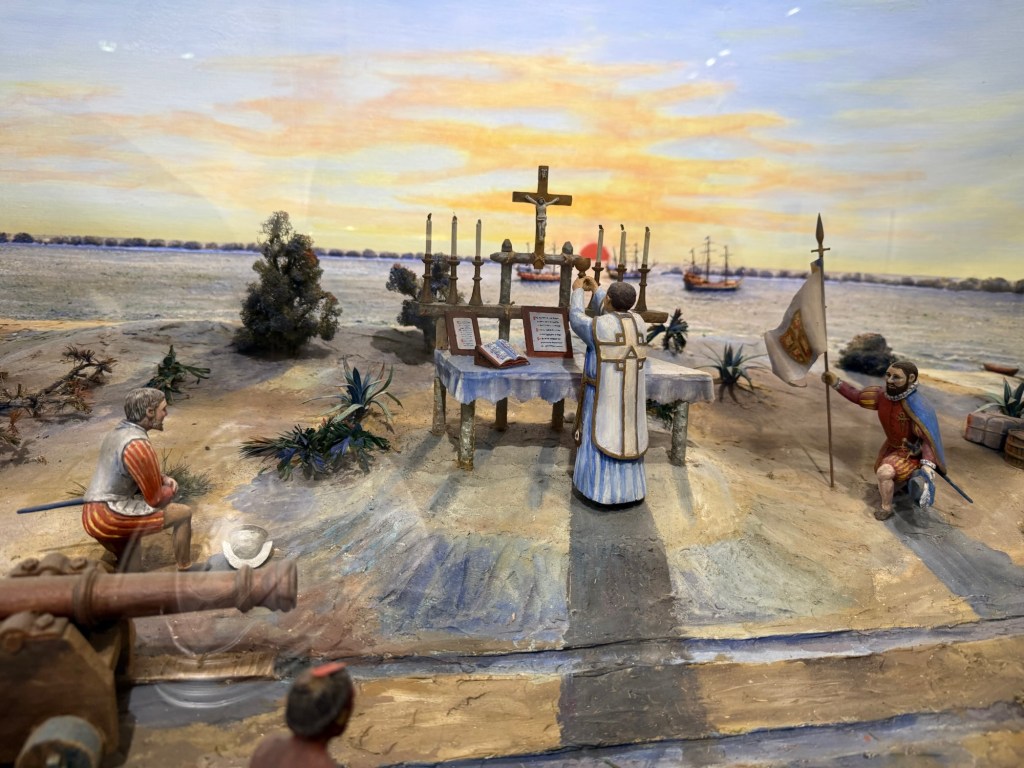 In this museum I found a diorama depicting a most significant event. A few yards away, near the shoreline, the Spaniards came ashore several centuries ago and consecrated the land to Almighty God.