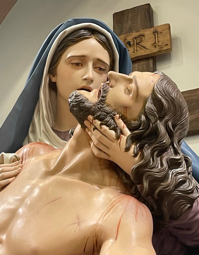 This perfect creature of God – she who became daughter of the Father, Mother of the Son, and Spouse of the Holy Ghost – radiant in her humility… This magnificent and most loving mother endured her Son’s Passion. Was it fair? Can you not feel sorrow for her and realize that it was you who caused this? I crucified her Son a dozen times today by indifference, malice, unbecoming speech, etc. I MUST look to her more and more and beg her to let me stand with her at the foot of His cross in every Holy Mass.