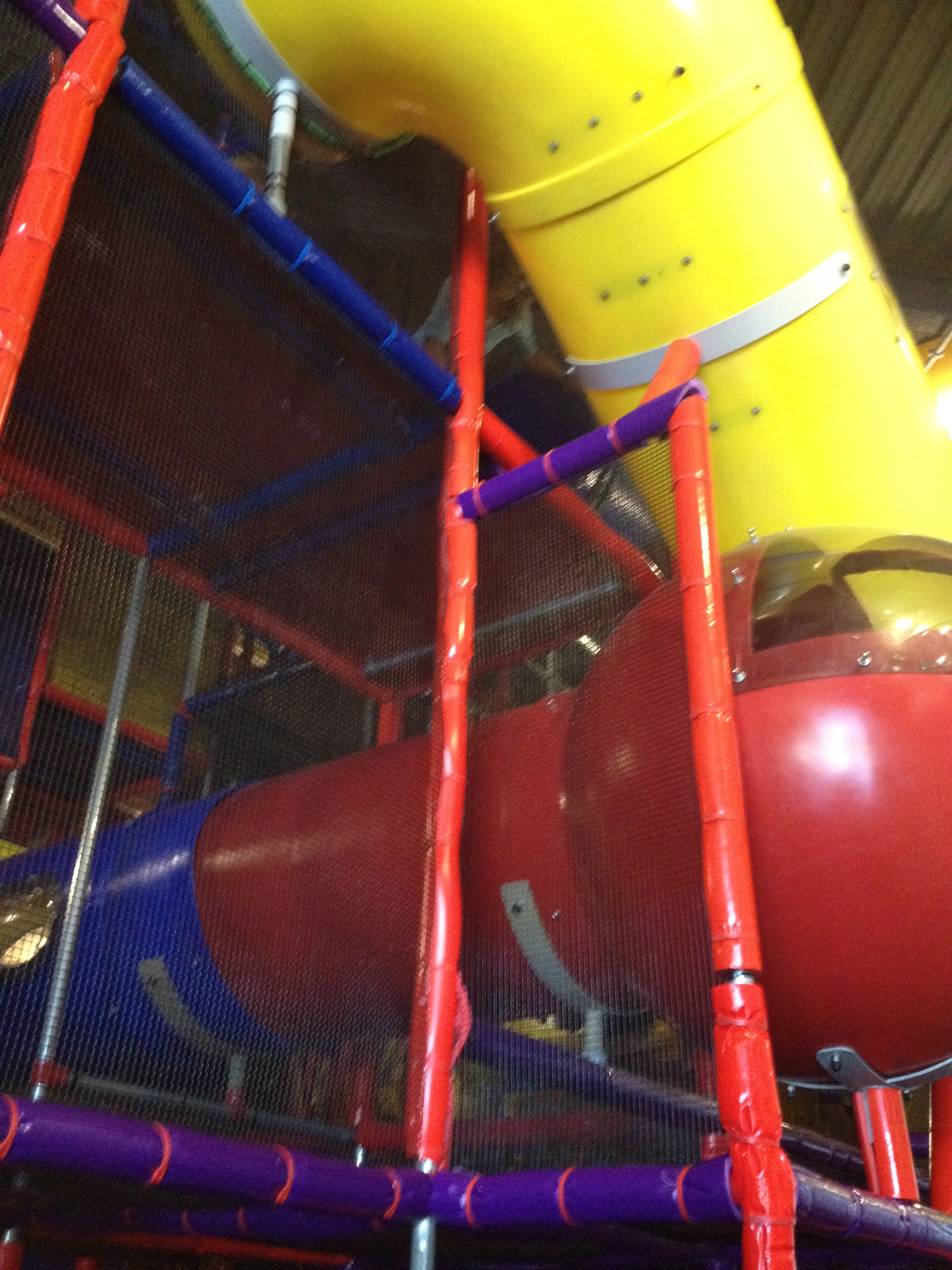 I took my kids to “the Tubes” this morning for some playtime. The Tubes are, as I’ve written before and as you might imagine, a large, indoor playground consisting of an endless series of large plastic tubes. Children climb through the tubes, scale the netting, and slide down another long tube. Somewhere along the way, I am convinced they are required to capture a flag and then plant it at the summit as a mark of their paramilitary prowess. It’s not unlike Marine Corps boot camp.