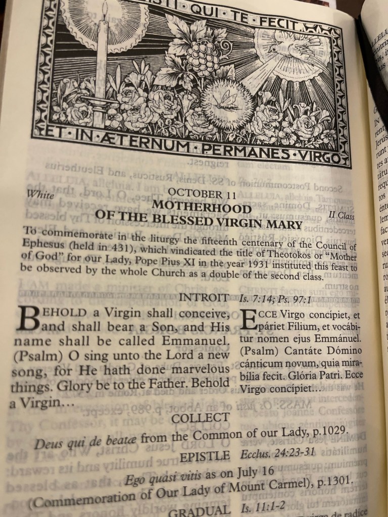 This day just passed was the feast of the Maternity of the Blessed Mother. This happens to be a feast on the “old” calendar that was stripped from the new. I cannot for the life of me figure out why a hierarchy that seems to detest motherhood (let alone authentic women) would want to suppress such a feast. Remember when he said our mothers needn’t “breed like rabbits”? What a vile and vulgar man…